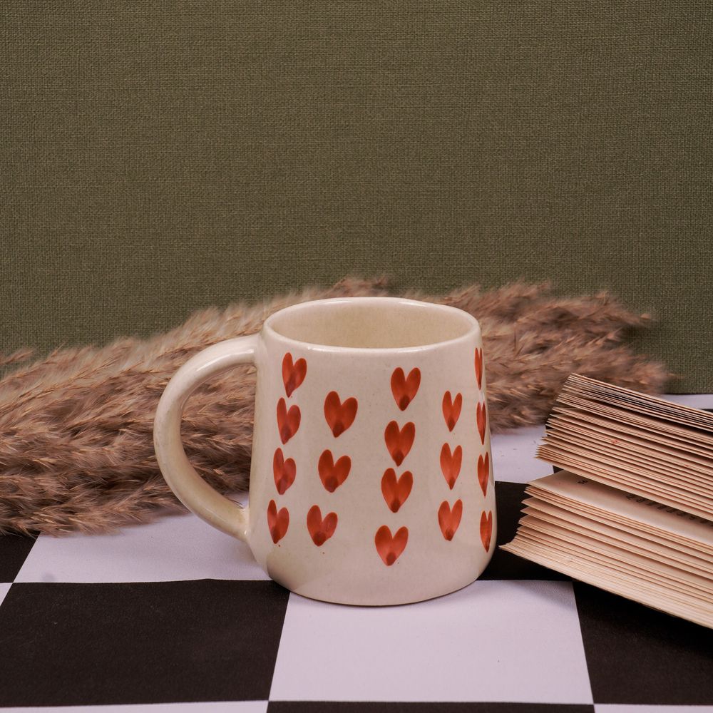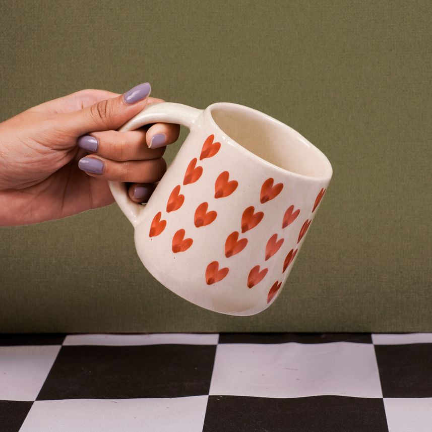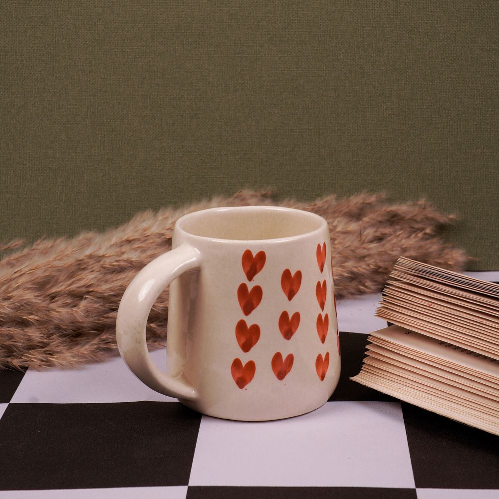 Blush Hearts Mug | Byora Homes | Beige & Red | Stoneware CeramicAvailability: In stock